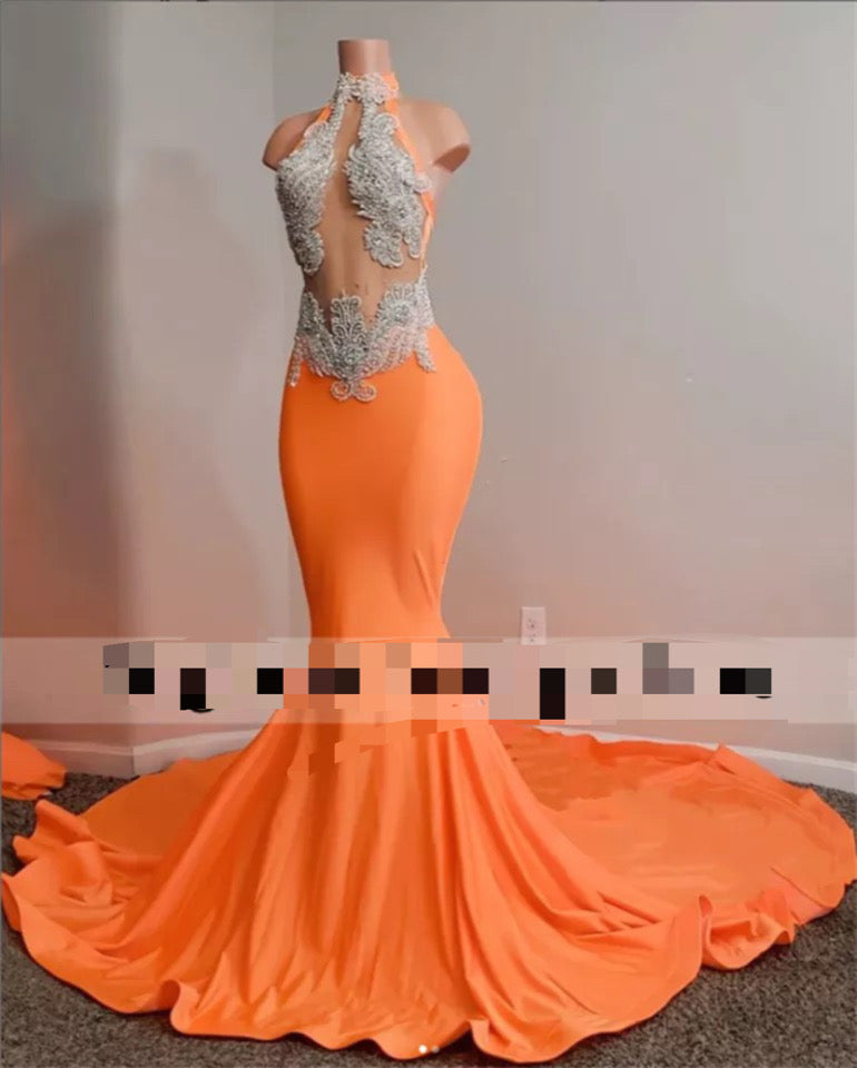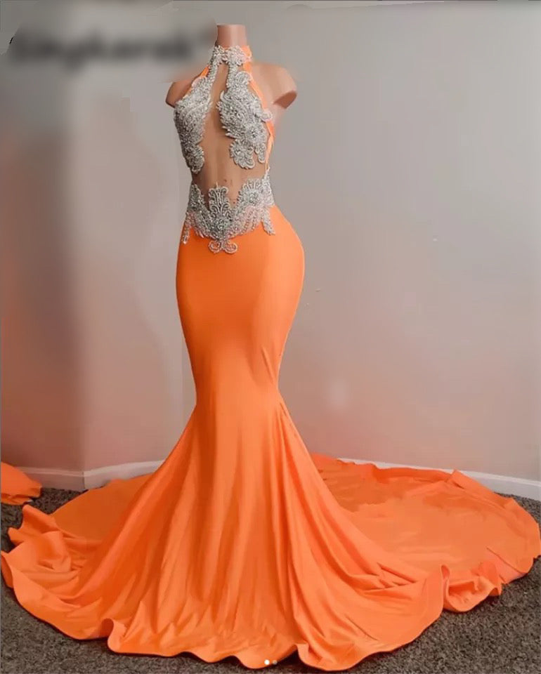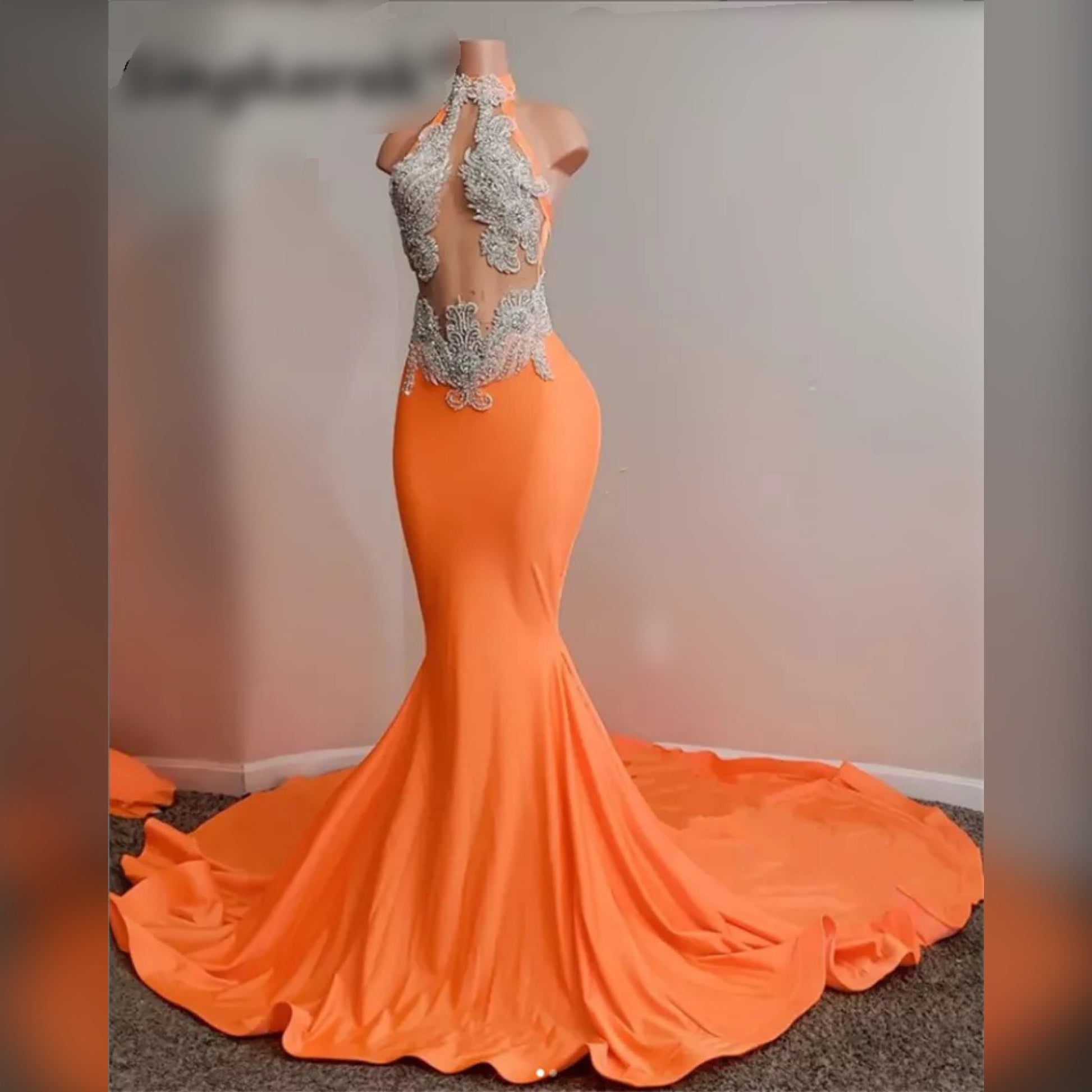 Sexy Mermaid African Prom Dresses 2022 For Black Girls Halter Illusion Beading Rhinestone Aso Ebi Party Dress Robe De Bal.