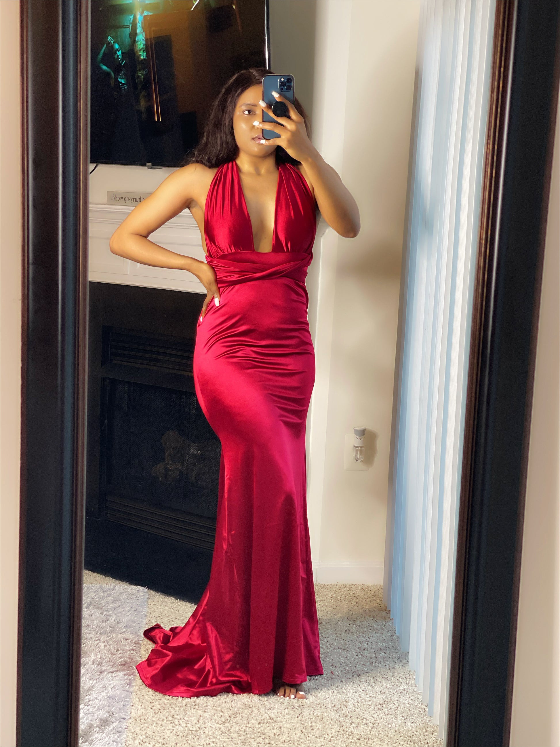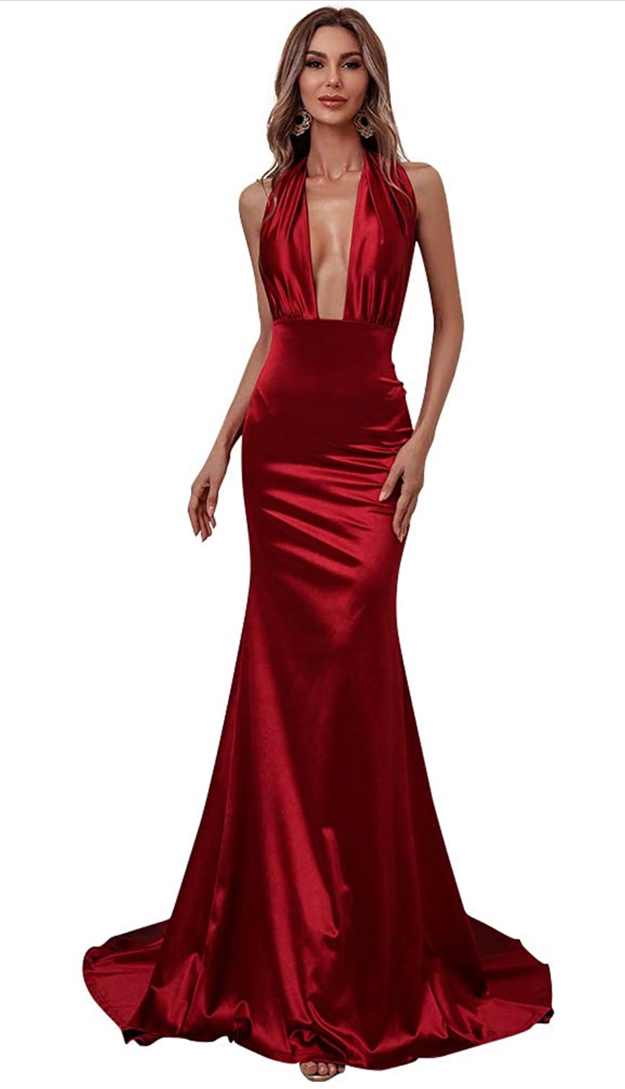 - Unique design: Sleeveless, backless, deep v plunging neck, mermaid hem, high waist, halter dress with adjustable bandage.