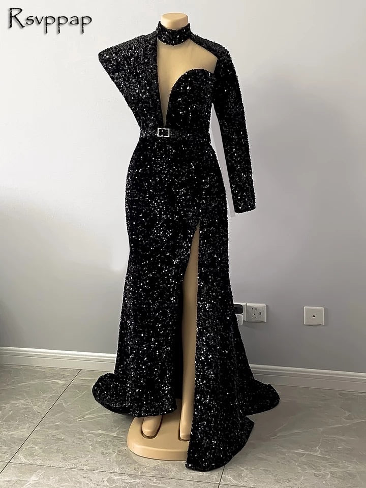 Elegant Single Long Sleeve Sheer O-neck Black And White Sequined African Women Black Girls Short Prom Dresses 2020FAQs