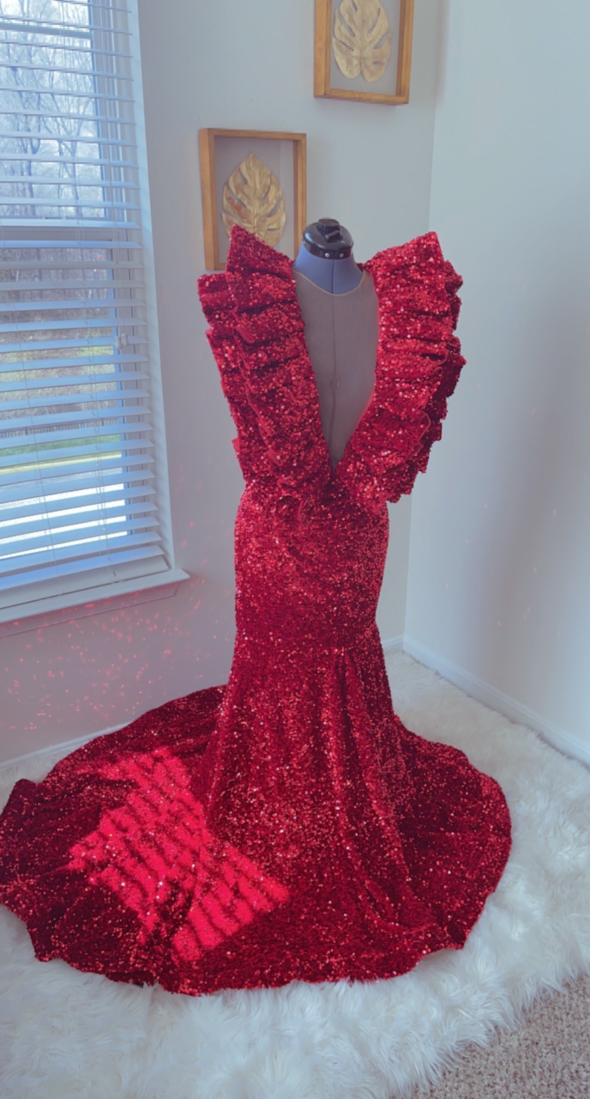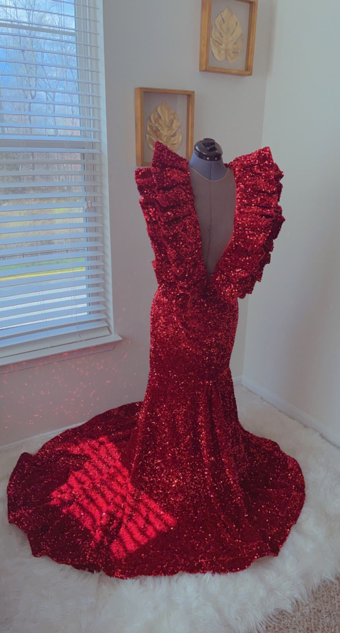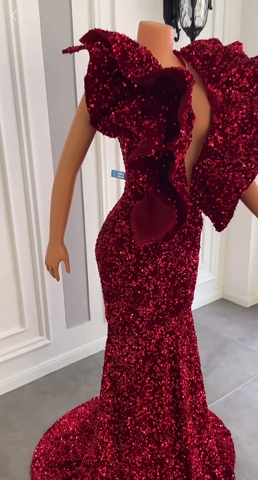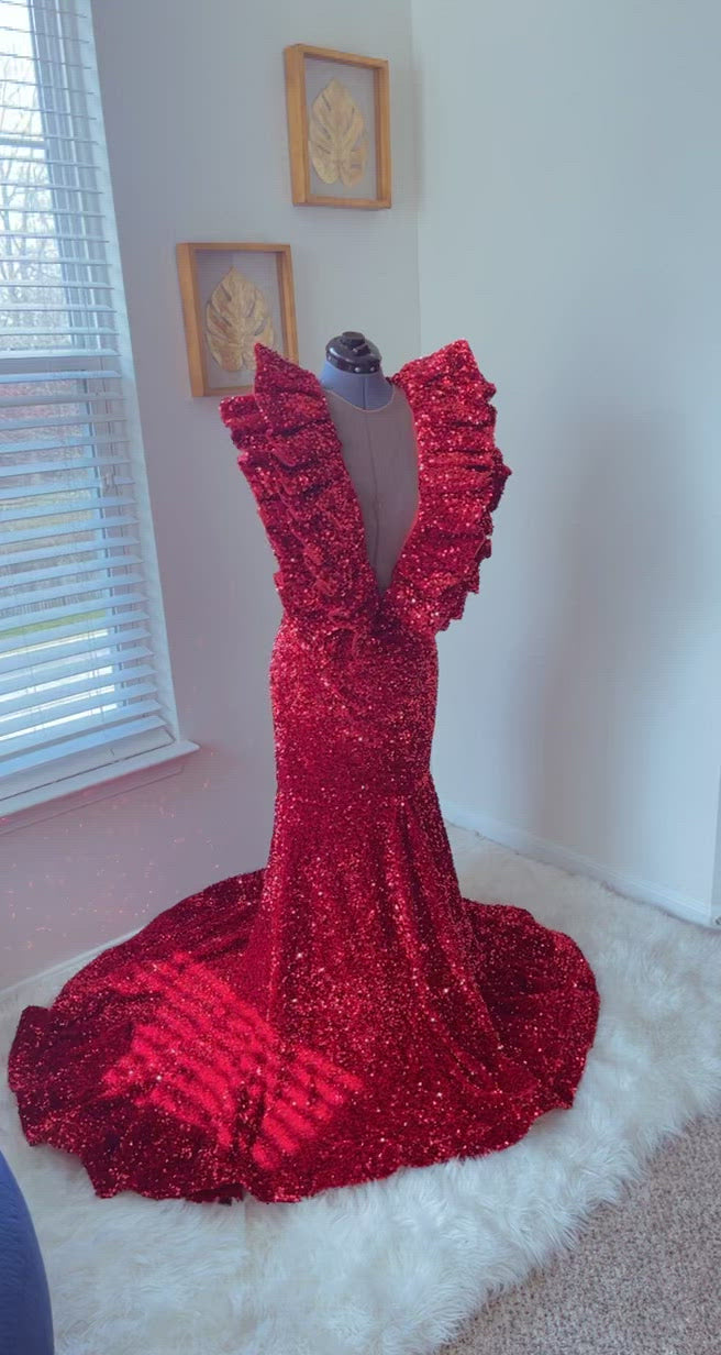 Long Sparkly Prom Dresses. Real V-neck Sleeveless Mermaid Ruffles Burgundy Sequin African Black Girls Prom Dress