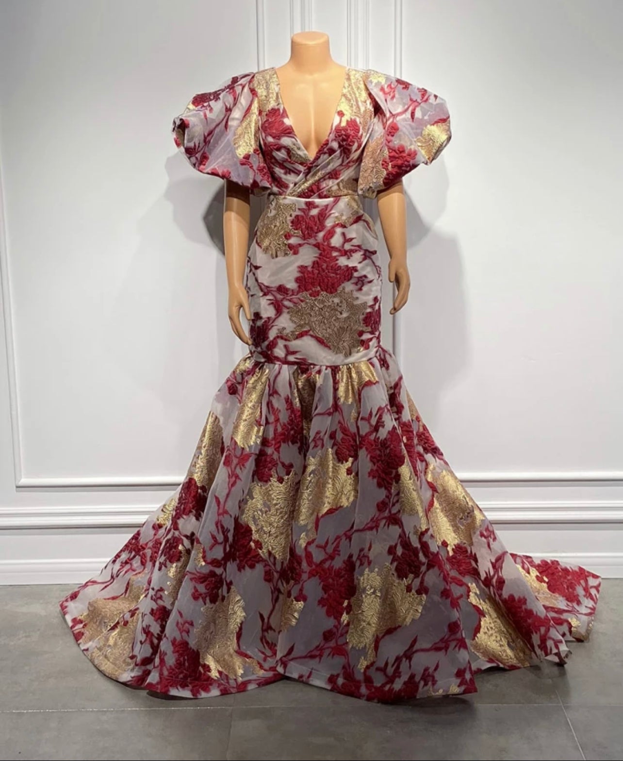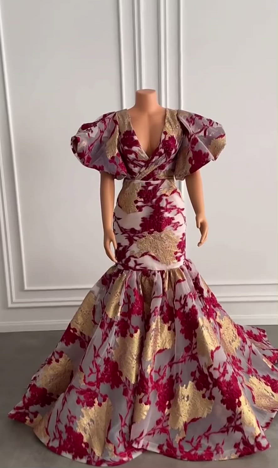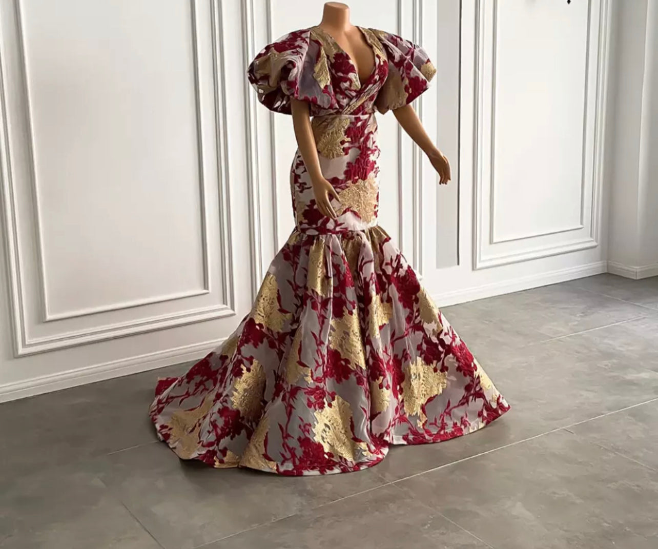 Luxury Long Arabic Evening Dresses Puffy Short Sleeve Mermaid Gold And Burgundy African Women Party Formal Gowns.